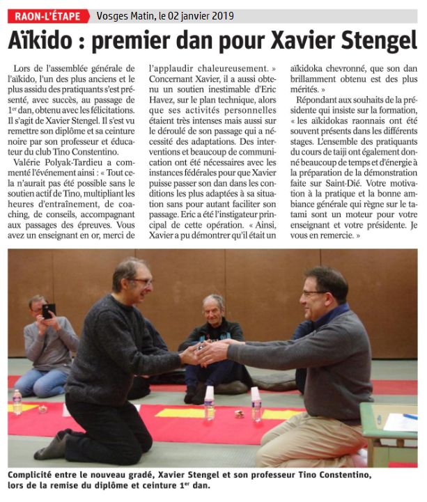 Aikido : 1er Dan pour Xavier Stengel - Vosges matin 02/01/2019