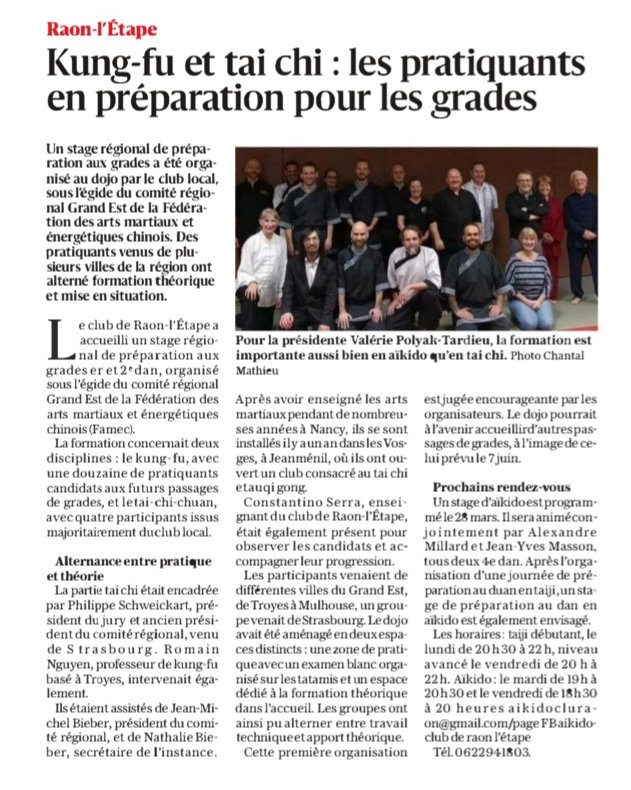 Stage de préparation duans Taichi - Vosges-Matin - 14 mars 2026