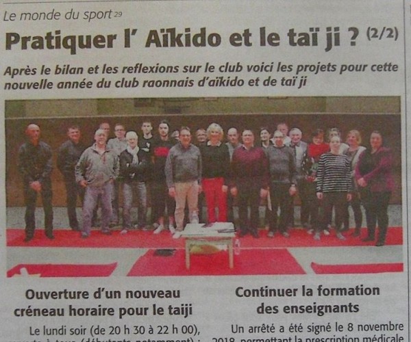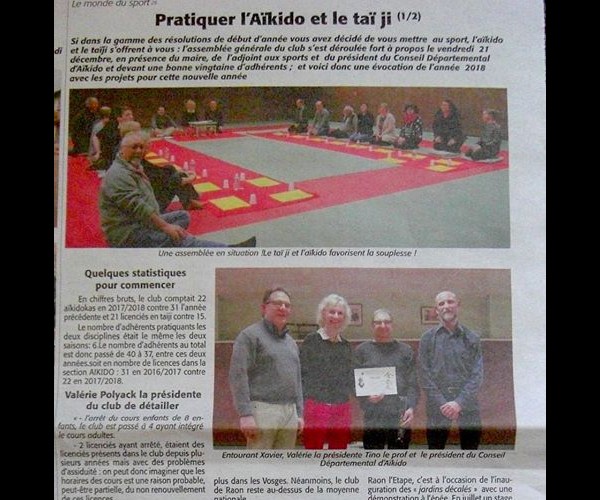 Pratiquer l'Aikido et le Taiji 1/2 - L'Echo des Vosges 03/01/19