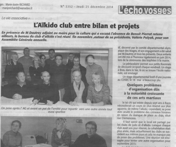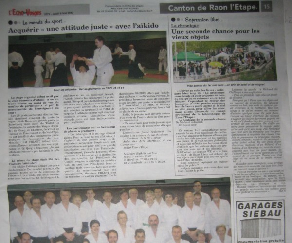Pratiquer l'Aikido - L'Echo des Vosges - 10 septembre 2015
