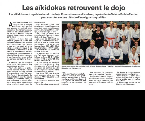 Rendezvous devenu régulier dans la cité raonnaise, le stage de formation destiné aux enseignants d’aïkido leur a permis de peaufiner différentes techniques.